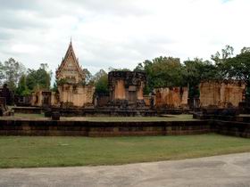 ガンペーンヤイ遺跡は規模は小さいながらお勧めの遺跡.この遺跡のためだけに遠路でかけるのはどうかと思うが,遺跡めぐりをするなら行程に組み込んでも良いと思う.回廊などあり,なかなかに楽しめる.(一説によれば,タイ国内のクメール遺跡の中では3-4番目に重要なのだそうだ).現在は仏教寺院(ワット=サ=ガンペーン=ヤイ)の境内に完全に含まれており,周囲には本堂や説教堂,僧坊,僧侶学校などの施設が並ぶ.