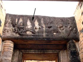 というあわせて5つの建物が並び,そのそれぞれの入り口のマグサ(楣)には,レリーフが施されている.どのレリーフも比較的保存状態がよい.回廊はラテライト,主塔・レリーフは砂岩,その他はレンガで造られている.